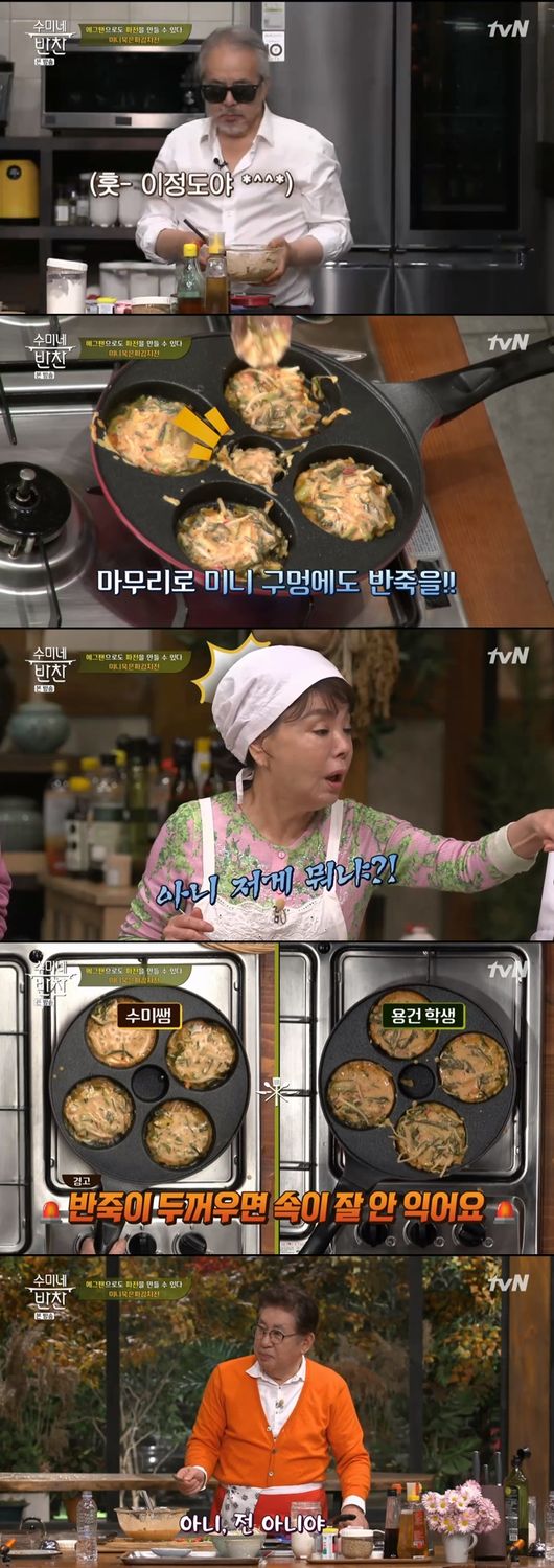 감사에 나선 김수미는 김용건의 전을 맛 보고 "전이 좀 두껍다. 이러면 잘 안 익는다"라고 말했다. 하지만 김용건은 두꺼운 전을 완벽하게 익혀 시선을 사로 잡았다.