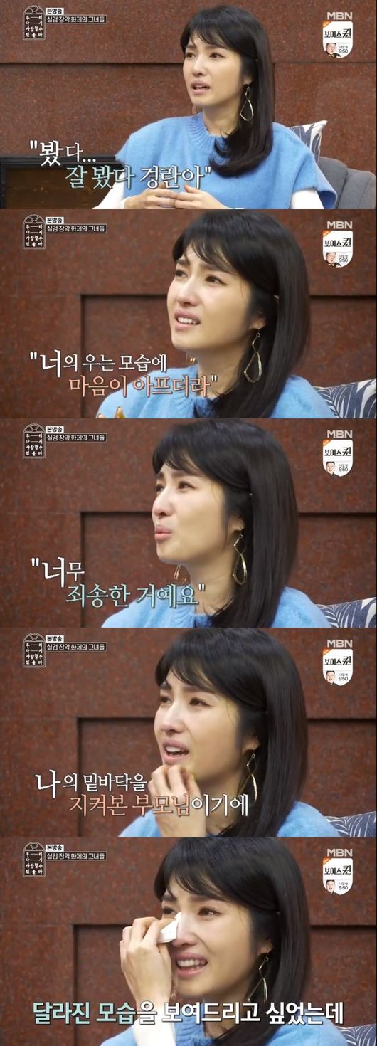 이에 경란은 "언니는 아이가 있고 엄마가 되어서 그런 생각을 하는지 모르겟는데 저는 아나운서가 된지 20년이 됐는데 그걸 매일 녹화를 하신다. 늘 보고 나면 부모님이 방송을 본 소감을 남기시는데 처음이다.본방을 보시고 부모님이 아무 말씀이 없으셨다."고 하면서 눈물을 흘렸다. "첫방이니까 카톡이 많이 왔고 거기에 계속 답장을 하고 있는데 문득 생각이 나는거예요. 엄마 아빠가 답이 없으시네."라고 했다.