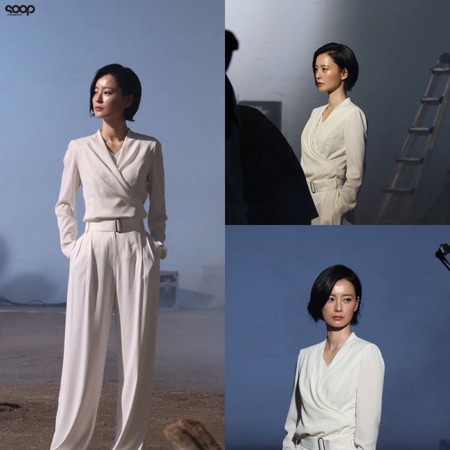 공개된 사진에서는 정유미의 시크하고 강렬함이 더욱 돋보인다. 특히 블라우스와 와이드 팬츠까지 올 화이트 컬러로 매치한 정유미는 깨끗하면서도 동시에 도회적인 시크함을 소화해냈다. 또한 깔끔한 숏컷 헤어와 어딘가를 지긋이 응시하는 눈빛에서는 굳건함이 느껴진다.