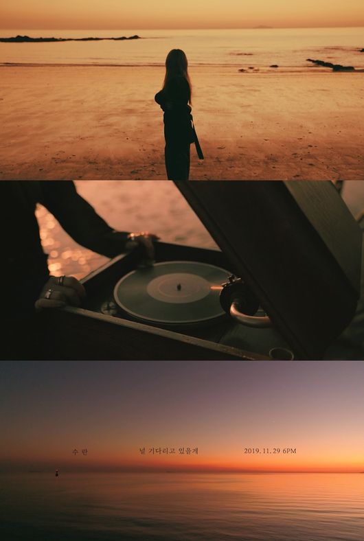 공개된 영상 속에는 저녁노을이 지는 해변에서 붉게 물든 수평선을 바라보는 수란의 뒷모습이 담겨 눈길을 끈다.