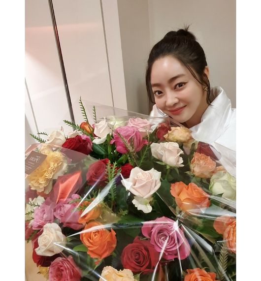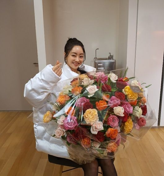 공개된 사진 속 서효림은 대기실로 보이는 공간에서 커다란 꽃바구니를 들고 있다. 그의 무릎 위에 놓인 꽃바구니는 그의 상체를 다 가릴 정도로 엄청난 크기를 자랑한다. 서효림은 만개한 꽃보다 아름다운 미소로 선물에 화답 중이다.