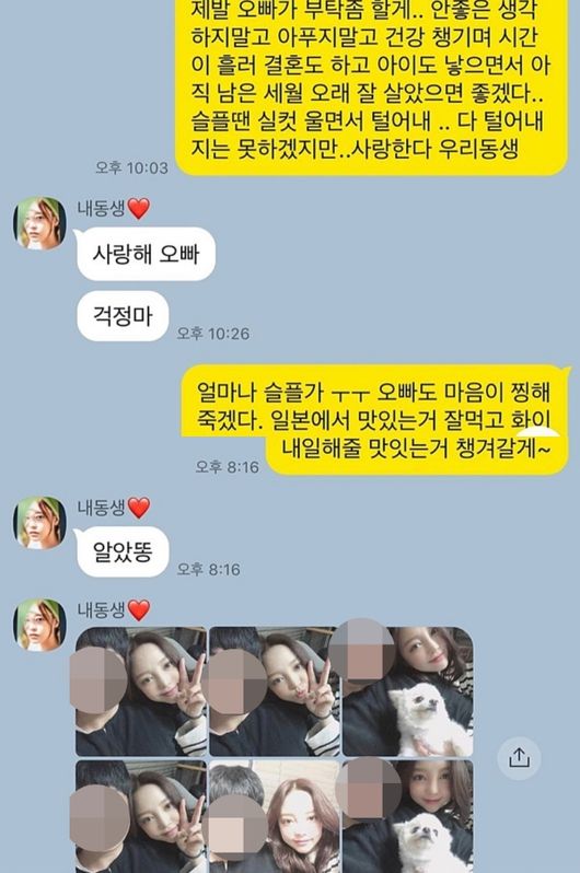 뿐만 아니라 구하라는 자신이 미소 짓고 있는 사진 여러 장을 보내, 걱정하는 친오빠를 안심 시키려 했다. 사진과 대화 속 구하라의 밝은 모습이 보는 이의 마음을 먹먹하게 만든다. 대화 너머 느껴지는 구하라와 친오빠의 우애에 그의 죽음이 더욱 황망할 따름이다.