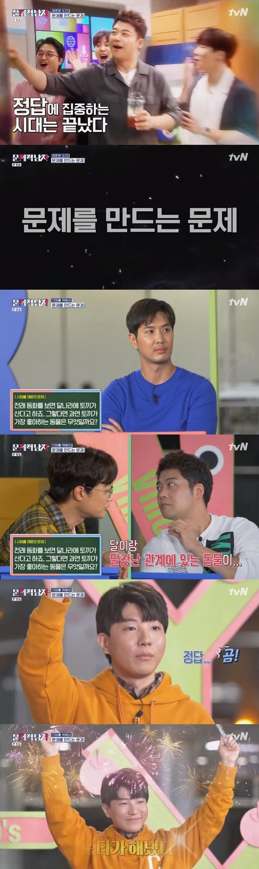 처음으로 공개된 문제는 김지석이 제출한 문제였다. 김지석은 "전래동화를 보면 달나라에 토끼가 산다고 한다. 그럼 과연 토끼가 제일 좋아하는 동물은 무엇일까요"를 문제로 제출했다. 이에 전현무는 "문제 안에 답이 있는 느낌이다"라고 말했다.