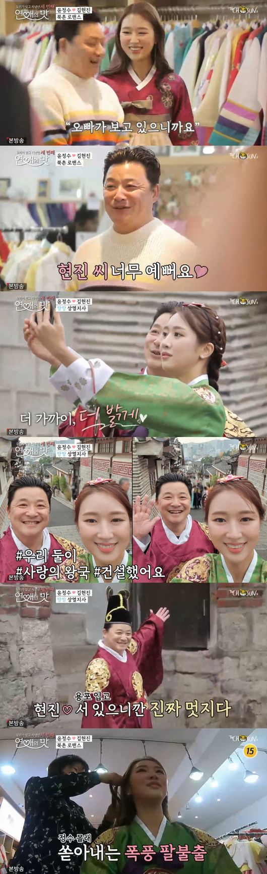 윤정수와 김현진이 그려졌다. 몰래 만난 덕분에 친해진 두 사람은 북촌 한옥마을 데이트를 위해 한복대여점부터 찾았다. 다양한 한복을 입고나온 현진을 보며 윤정수는 "다 잘 어울려, 너무 예쁘다"면서 칭찬, 현진은 "오빠가 보고있으니 부끄럽다"며 수줍은 미소를 지었다.