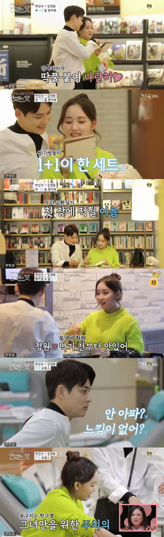 이어 두 사람은 현혈을 하러 이동했다. 현혈이 끝난 후, 뭐라도 챙겨주려하는 박진우에 김정원은 "어깨를 주세요"라고 말하며 마음을 드러냈고, 박진우도 머리를 맞대며 마음을 표현했다. 이어 두 사람은 차안에서 데이트하면서 미니빔으로 둘만의 영화관을 만들며 달달한 시간을 보냈다.