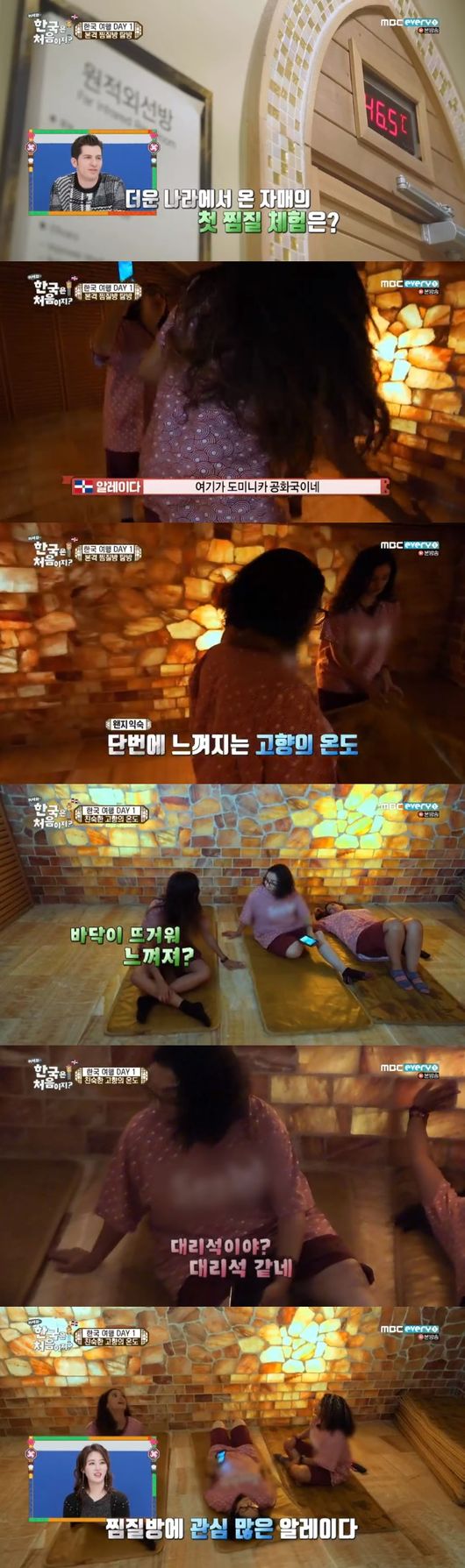 그레이스는 "각 방에 써있는 숫자는 온도"라고 알려주면서 처음으로 원적외선 방으로 들어갔다. 더운나라인 도미니카 공화국에서 온 알레이다와 마리벨은 "여기가 도미니크네"라고 하면서 온도를 익숙해 했다. 가을동화부터 겨울연가, 천국의 계단 등 한국드라마를 섭렵한 알레이다는 찜질방의 구조가 익숙한 듯 스스럼 없이 자리에 누웠다. 그레이스를 만나기 위해 18시간을 비행해서 날아온 터였다.