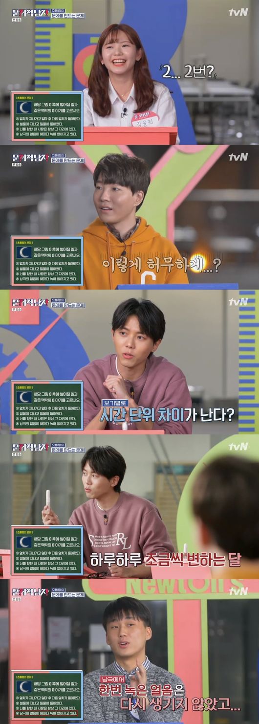 포항공대 학생인 오윤재는 "그믐달이 진 후 초승달이 떠오르는 의미가 비슷한 것 같다. 완전히 사라진 후 다시 생기는 맥락을 찾아야 할 것 같다. 2번의 경우 바다는 그대로 있지만 변화를 하는 것과 비슷하다"라고 말했다. 정답이었다.