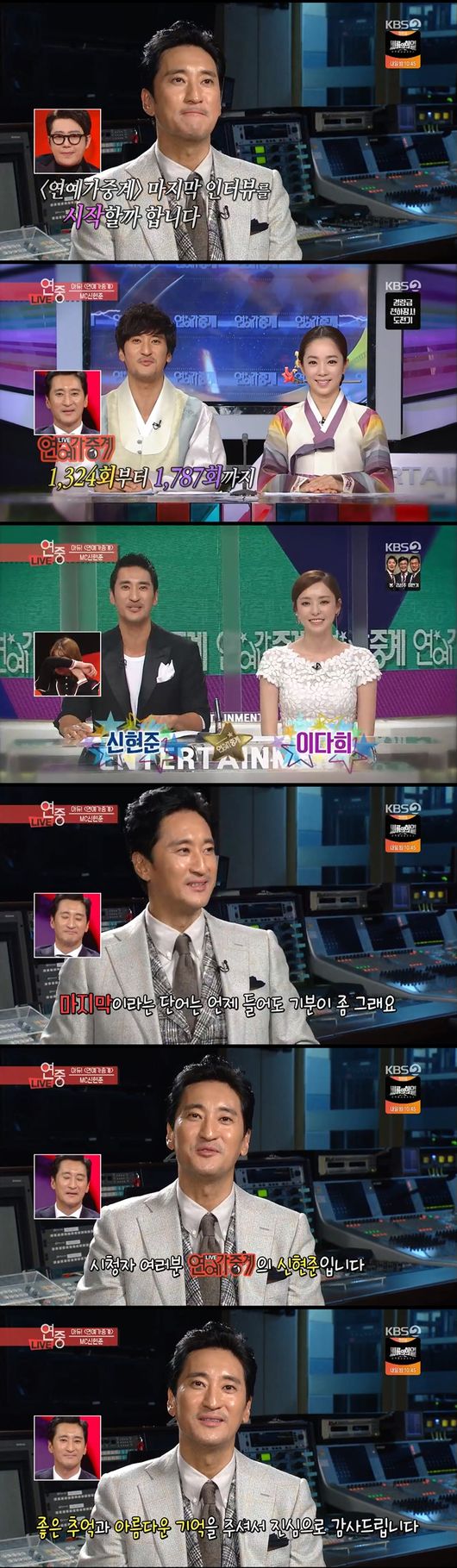 29일 방송된 KBS2TV '연예가중계'에서는 종영을 맞아 마지막 인터뷰가 그려졌다. 이날 '연예가중계'의 마지막 인터뷰는 MC신현준이었다. 신현준은 10년 동안 MC석에 앉았다. '연예가중계' 역사상 최장수 MC.