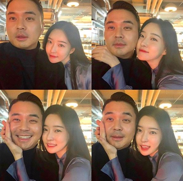 이와 함께 게재한 사진은 얼굴을 맞대고 핑크빛 무드를 자아내는 두 사람의 모습을 담고 있다.