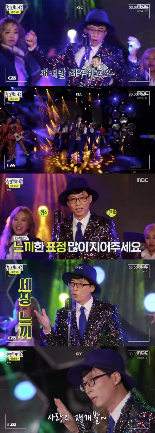 유산슬은 한 시간 동안 3번의 테이크를 거쳐 ‘사랑의 재개발’ 뮤직비디오를 완벽하게 완성했다. 후니는 유재석에게 “정말 잘한다”는 칭찬을 아끼지 않았다.