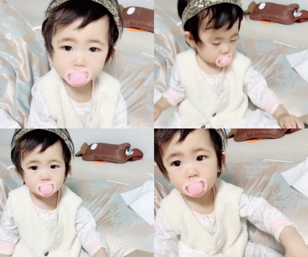 티슈를 모두 뽑아 버리고 있는 와중에 혜정은 아빠 진화의 눈을 그대로 닮은 큰 눈과 미모를 뽐내 보는 이의 감탄을 자아낸다.