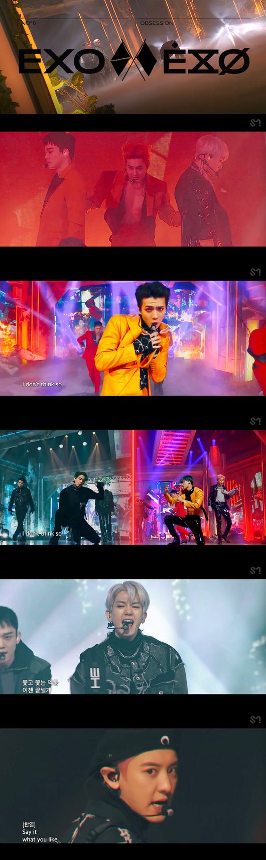 이날 컴백 무대 영상은 앞서 공개된 엑소 버전 '옵세션'과 X-엑소 버전 '옵세션'의 교차편집본이다. 엑소가 기존 대중이 알던 엑소라면, X-엑소는 엑소 세계관의 절대악인 붉은 기운에 의해 만들어진 존재다.