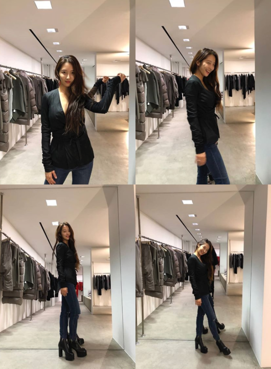 또 다른 사진에서는 올블랙 패션의 진수를 자랑하고 있다. 진한 화장기 없는 수수한 얼굴이지만 어떤 옷이든 찰떡처럼 소화하는 S라인이 눈길을 끈다. 소탈한 듯 세련된 패션으로 ‘꾸안꾸’의 정석을 입증하고 있다.