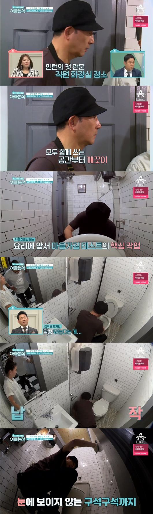 이어지는 미션은 화장실 청소였다. 더글라스는 "설거지 하시는 것 보다는 낫네요"라는 말로 첫 칭찬을 받았다. 이어지는 광렬의 짠한 모습에 김구라는 "오해하실 수도 있겠지만, 이건 100% 전광렬씨가 하겠다고 해서 시작한 미션이다"라고 했다.
