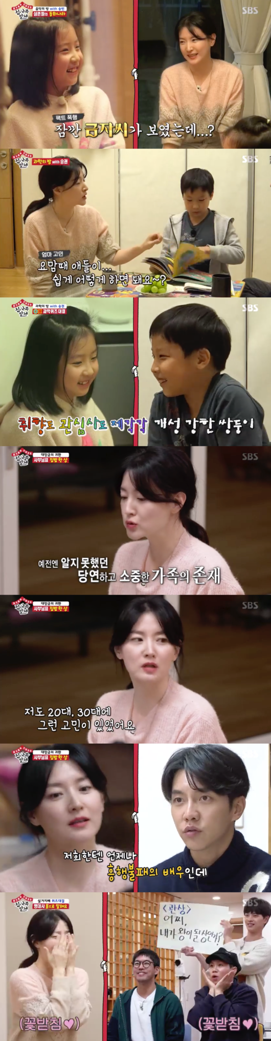 관심사가 전혀 다른 쌍둥이 아들 딸이었다. 이영애는 이상윤에게 “요즘 애들 수학이 너무 어렵다. 이맘 때 애들 교육 어떻게 해야 하냐”며 엄마 이영애로서 아이들 교육에 적극적인 태도를 보였다. 반면 노래를 좋아하는 딸을 보면서도 흐뭇한 엄마 미소를 지어 눈길을 끌었다.