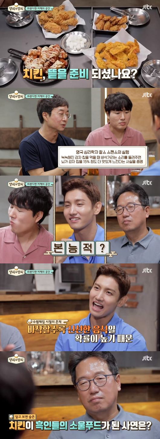 1일 방송된 JTBC 예능 '양식의 양식'에서는 치킨을 즐기고 맛보며 치킨에 관한 모든 것에 대해 이야기하는 모습이 그려졌다.