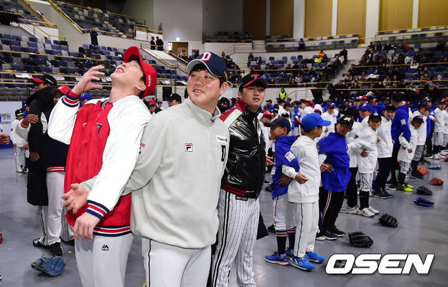 이날 자리에 참석한 함덕주는 "어렸을 때로 돌아간 기분"이라며 "(고)우석이와 한 조였는데, '우리 초등학교 때로 돌아간 기분'이라는 이야기를 했다. 다른 행사도 즐거웠지만, 이렇게 아이들과 함께 즐기는 행사에 참석할 수 있어서 뜻깊고 유익한 시간이었다"고 소감을 전했다. 민병헌 역시 "내가 이 동네 출신이라 더 뜻 깊은 것 같다"라며 "좋은 계기가 돼서 한국 야구 뿐 아니라 메이저리거까지 됐으면 좋겠다"고 미소를 지었다. / bellstop@osen.co.kr