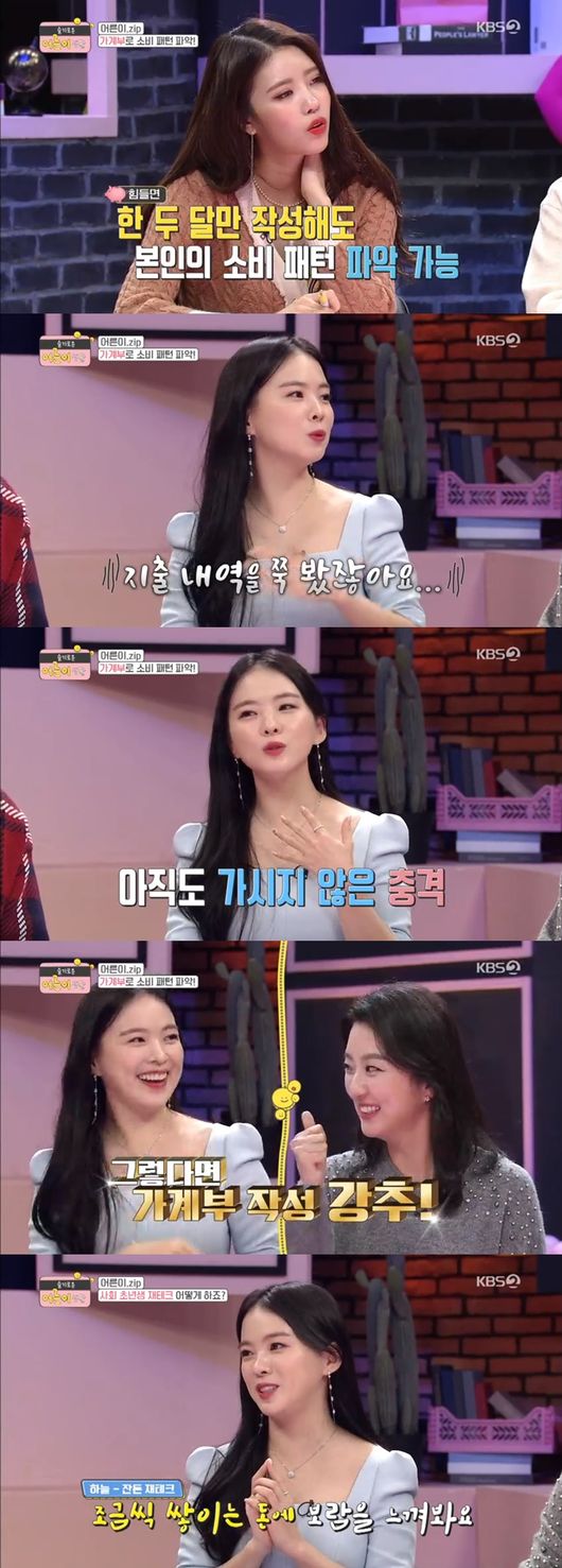 하늘은 "하울 영상도 찍는다. 하울 영상용으로 구매를 합리화 하는 편이다"라고 말했다. 장성규는 하늘의 소비 패턴을 확인하던 중 1분 차이로 같은 금액이 결제된 것을 확인했다. 장성규는 "이럴 경우 중복 결제가 될 수 있다"라고 말했다. 하늘은 깜짝 놀라 "돈이 줄줄 새고 있다"라고 말했다.