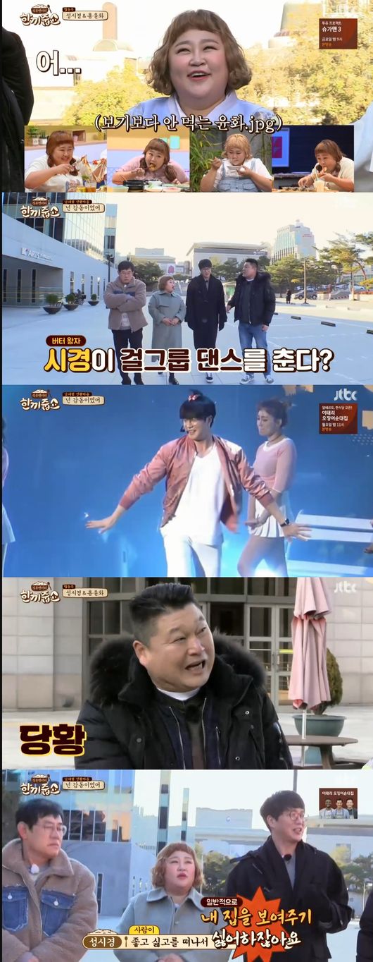이날 MC들은 "식(食)에 일가견 있는 두 사람"이라며 성시경과 홍윤화를 소개, 두 사람은 "미식가와 대식가"라며 셀프인사했다. 요섹남 성시경 등장에 MC들은 "꿀보이스라 유리하다"며 기대감에 찼다. 이 분위기를 몰아 홍윤화는 지하철 잔망미 개그로 분위기를 후끈하게 띄웠다.