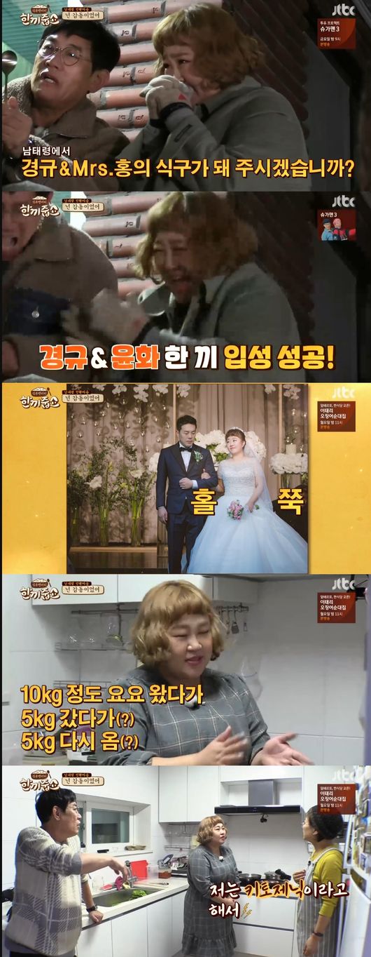 또한 다이어트라는 공통점으로 얘기를 나누던 중 홍윤화는 "결혼할 때 30키로 뺐다"면서 "지금은 요요가 계속 오고 있다"며 다이어트 정보를 공유해 달라했다. 이에 집주인은 '키토제닉 다이어트'라면서 탄수화물을 줄이고 지방, 단백질 섭취를 늘려야한다고 팁을 전해 눈길을 끌었다.