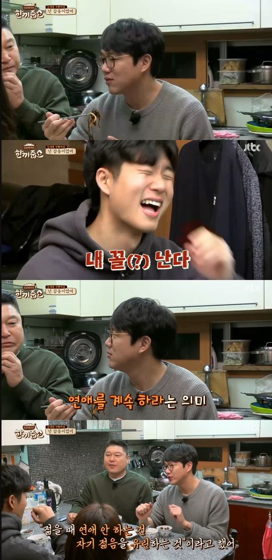 노래에 이어 요리실력까지 뽐내던 성시경은 집주인의 조카가 솔로라고 하자 "그러다 내 꼴난다"면서 "연애를 계속 하라는 의미, 배철수 선배가 젊을 때 연애를 안 하는 건 자기 젊음을 유린하는 거라더라"며 좋은 짝을 만나길 응원했다.