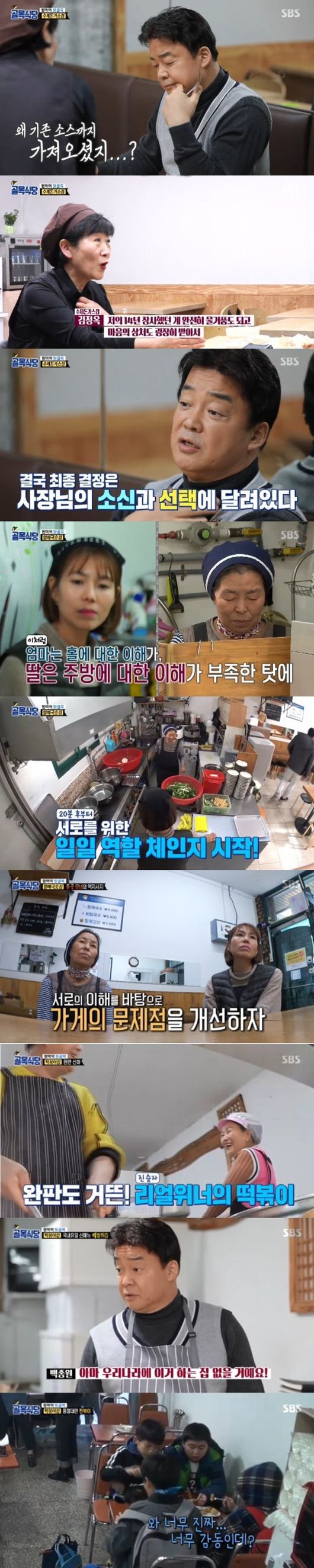 할매국숫집 모녀 사장님은 엄마는 홀을, 딸은 주방을 담당해 역할을 바꿔 장사해보는 ‘맞춤미션’에 도전했다. 모녀 사장님은 당황하는 기색 없이 장사를 시작했으나 시간이 지날수록 총체적 난국이었다. 어머니는 손님 응대와 함께 김밥까지 만들어야 했지만 혼자서 감당하기에는 역부족이었고, 포스기에도 익숙하지 못했다. 딸 역시 정신없기는 마찬가지였고, 이번 미션을 통해 딸은 “엄마가 진짜 힘들었겠구나 싶었다”며 어머니의 마음을 이해했다.