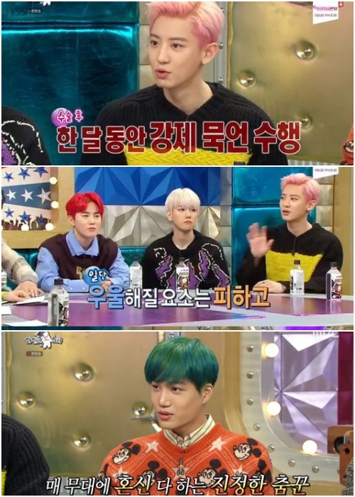 지난달 27일 정규 6집 ‘OBSESSION’을 발매한 엑소는 4일 전파를 탄 MBC 예능프로그램 '라디오스타(이하 라스)'에 출연했다. 이날 방송은 '엑소클라스’ 특집으로 엑소 수호, 백현, 찬열, 카이, 세훈, 첸이 출연해 눈길을 사로잡았다.