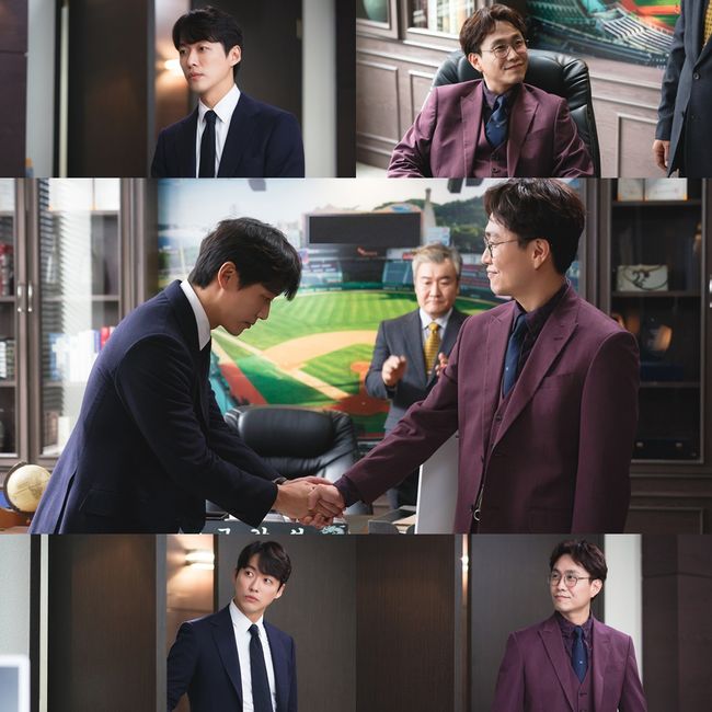 남궁민과 오정세의 ‘축하 인사’ 장면은 지난 11월 경기도 파주에서 촬영됐다. 남궁민과 오정세는 장면 특성상 서로를 향한 묘한 긴장감을 자연스럽게 드러내야 하는, 쉽지만은 않은 촬영을 진행해야 했던 상황. 두 사람은 대본을 곱씹으며 밀도 높은 리허설을 펼쳐 감정을 끌어올렸고, 촬영이 시작되자 각각 드림즈에 새로운 바람을 일으킬 백승수와 드림즈를 쥐락펴락하는 구단주 역할을 하는 권경민으로 분해, 몰입감 있는 연기를 선보였다.