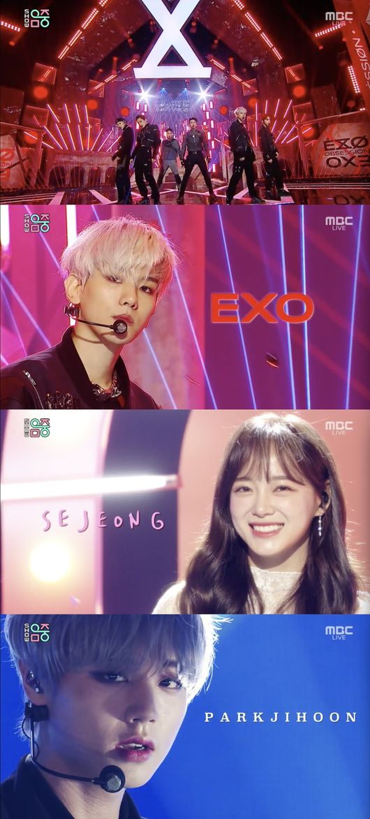 이날 방송에서는 엑소와 세정, 박지훈의 컴백 무대가 공개됐다. 최근 정규 6집을 발매하고 돌아온 엑소는 이날 타이틀곡 ‘Obsession’(옵세션) 무대로 강렬한 카리스마를 발산했다.