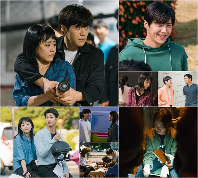 문근영-기도훈은 ‘Ctrl+C’-‘Ctrl+V’ 한 것 같은 닮은꼴 표정으로 댕댕미를 뽐내고 있는 가운데 극 중 감초 역할을 톡톡히 해내고 있는 조재윤-안승균의 모습 또한 눈길을 끈다. 실제 아빠와 아들 같은 찰떡 궁합으로 촬영장 분위기 메이커로 활약하며 현장을 더욱 활기차게 만들었다는 후문. 또한 김선호의 꽃미소 만발한 모습이 보는 이들의 심쿵을 유발하는가 하면, 정유진은 핸드폰 불빛을 조명 삼아 대본을 탐독하는 모습으로 멈출 줄 모르는 연기 열정을 불태우고 있다.