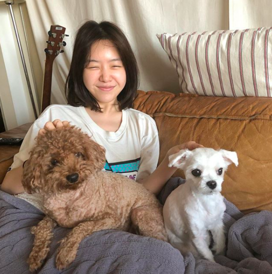 사진 속에서 민아는 편안한 티셔츠를 입고 이불 속에서 두 마리 반려견과 함께 있는 모습. 특히 화장기 없는 완벽한 민낯과 헝크러진 머리까지 내추럴한 매력이 눈길을 끈다.