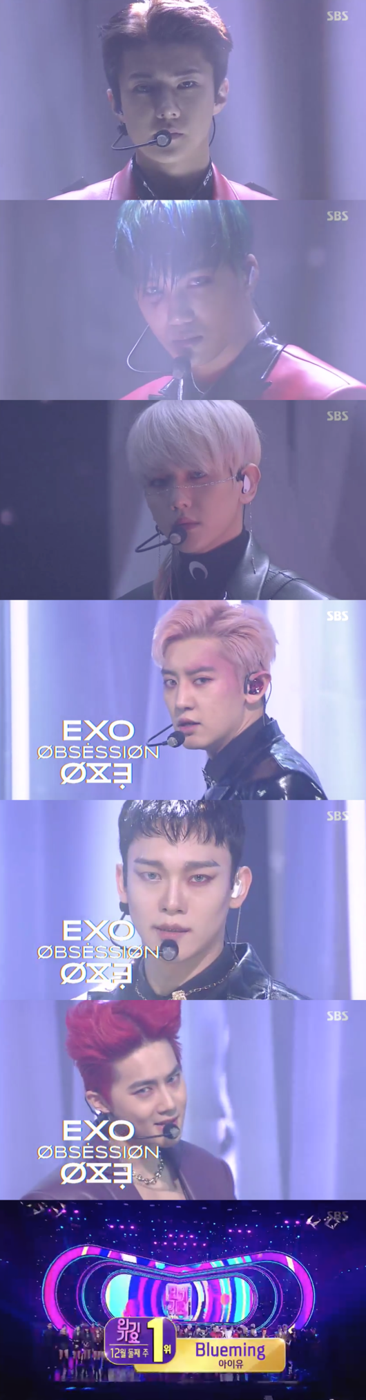8일 오후 생방송으로 진행된 SBS ‘인기가요’에서 '블루밍’의 아이유 12월 둘째 주 1위를 따냈다. ‘옵세션'의 엑소, ‘HIP’의 마마무를 꺾고 1위 트로피를 품었다. 아이유는 이날 생방송 무대에 불참했다.