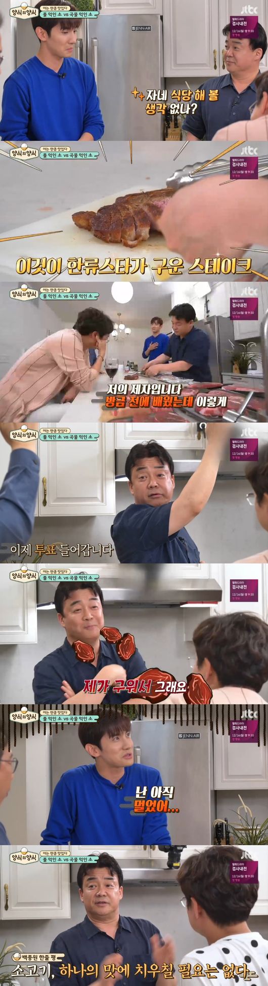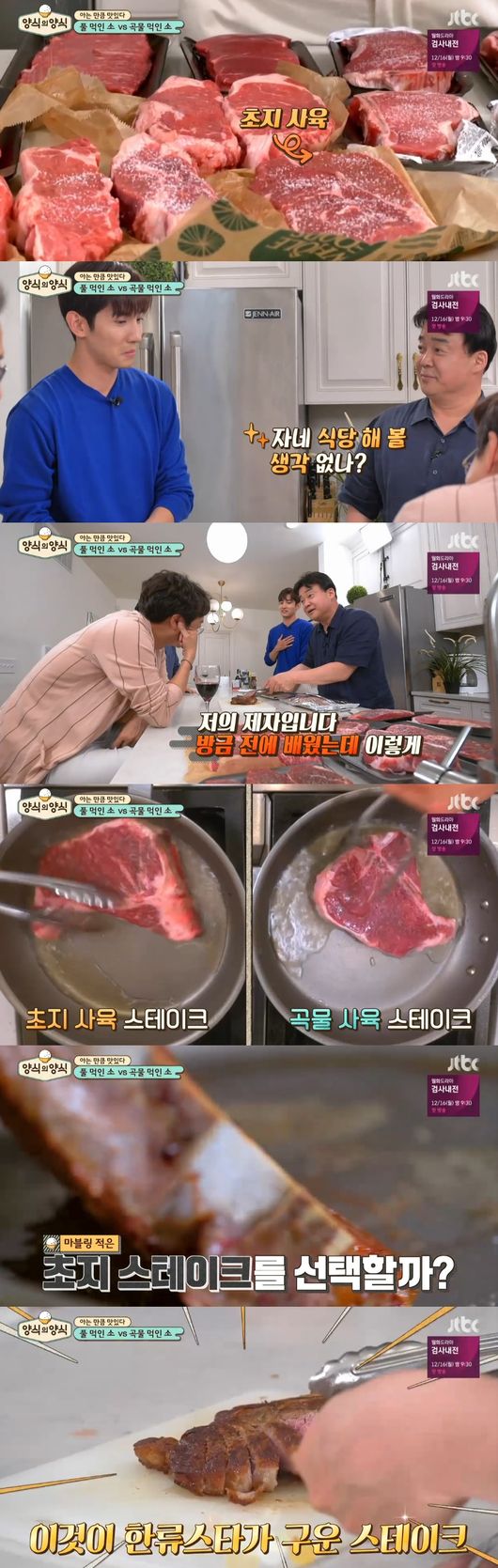 풀먹인 초지사육 소와 곡물먹인 곡물사육 소를 비교해보기로 했다. 최강창민이 구운 스테이크에 백종원은 "자네 식당 한 번 해볼 생각 없나?"라며 박수치면서 "저의 제자, 방금 배웠는데"라며 칭찬했다.