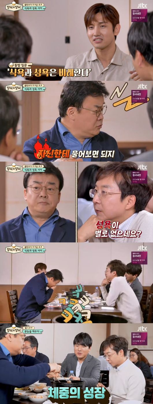 이때, 최강창민은 식욕과 성욕은 비례한다는 근거가 있는지 질문하자, 백종원은 "자신한테 물어보면 되지, 남한테 물어보냐"며 받아쳐 웃음을 안겼다. 그러면서 "난 관계없는 거 같은데"라고 하자, 유현준 교수가 "성욕 없으시냐"며 돌직구 질문으로 백종원을 당황시켜 폭소하게 했다.