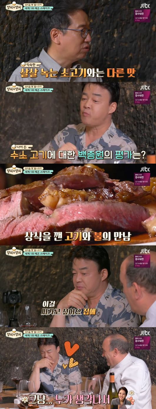 지난 8일 방송된 JTBC 예능 '양식의 양식'에서 불과 고기에 대한 스토리를 전했다.