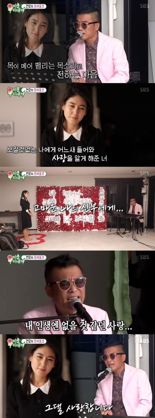 8일 전파를 탄 SBS '미운 우리 새끼(이하 미우새)’에서 김건모는 지인들과 함께 피앙세 장지연에게 프러포즈 할 준비를 했다. “모든 게 다 좋다. 내가 상상했던 결혼 생활들이 있는데 그게 실현 된다니까 새로운 신곡을 발표하는 기분”이라며 한껏 들뜬 표정을 지었다.