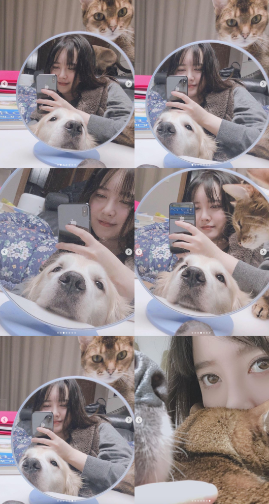구혜선은 9일 오후 자신의 인스타그램에 “녀서들”이라는 짧은 메시지와 함께 셀카 사진 여러 장을 올렸다. 사진에서 그는 원형 거울에 자신의 얼굴을 담은 채 반려견, 반려묘들에 둘러싸여 있다.
