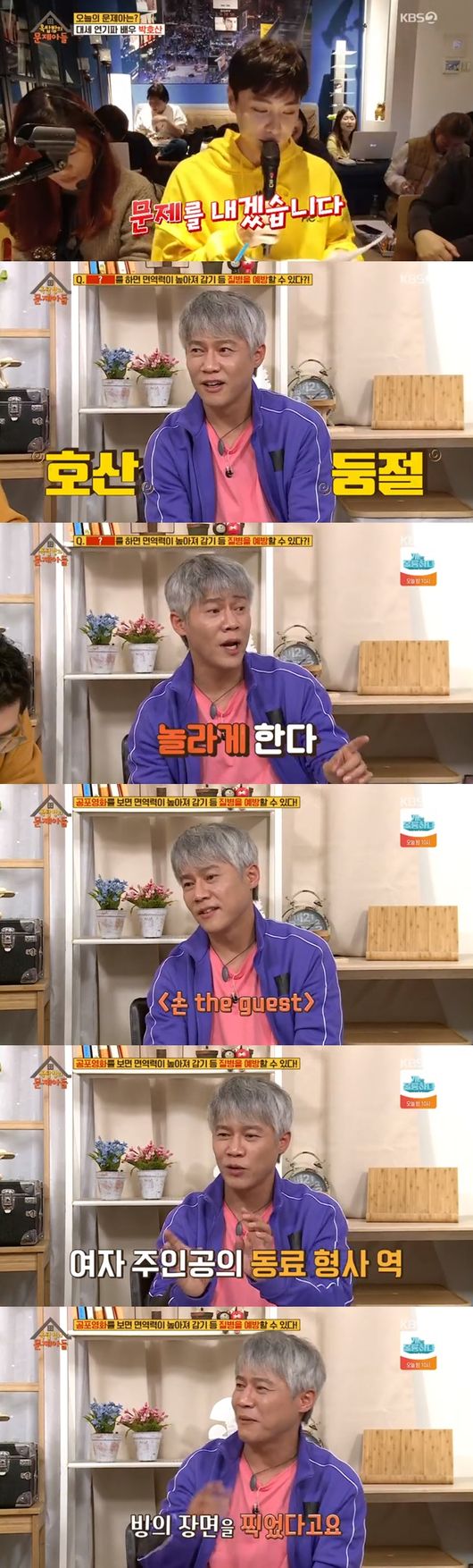 이날 퀴즈 출제자로는 민경훈이 나섰다. 민경훈은 "이것을 하면 면역력이 높아져서 감기는 물론 각종 질병을 예방할 수 있다"라고 문제를 제출했다.