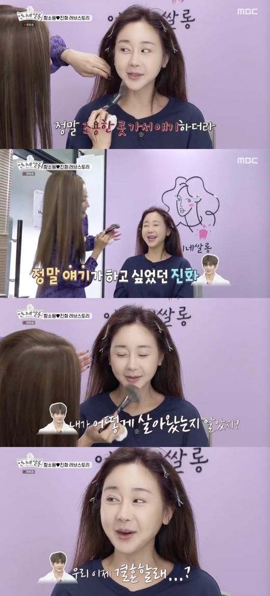 이사배는 함소원의 메이크업을 해주던 중, 진화와 만나게 된 계기를 물었다. 이에 함소원은 "그 느낌이 있더라. 이 남자랑은 쉽게 헤어지지 않겠구나 싶었다"라고 운을 뗐다.