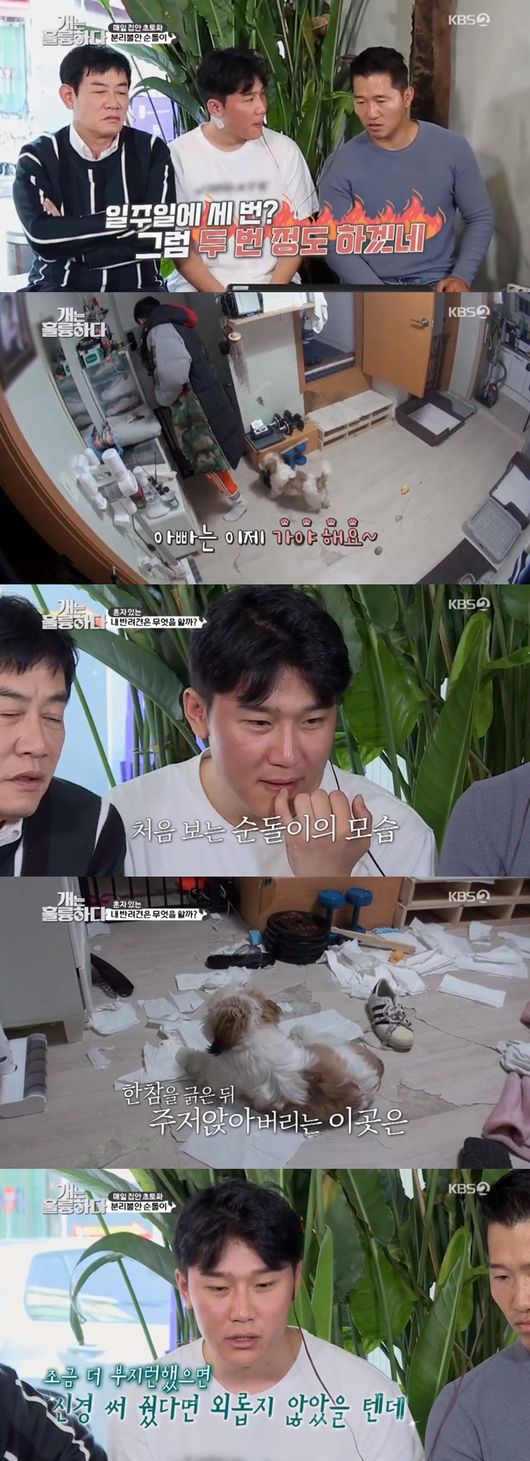 이날 보호자가 없는 집 안을 엉망으로 만드는 강아지 순돌이의 사연이 공개 됐다. 순돌이는 보호자가 없는 집안에서 보호자만 기다리다가 집안 물건을 망가뜨리는 모습을 보여 안타깝게 만들었다.
