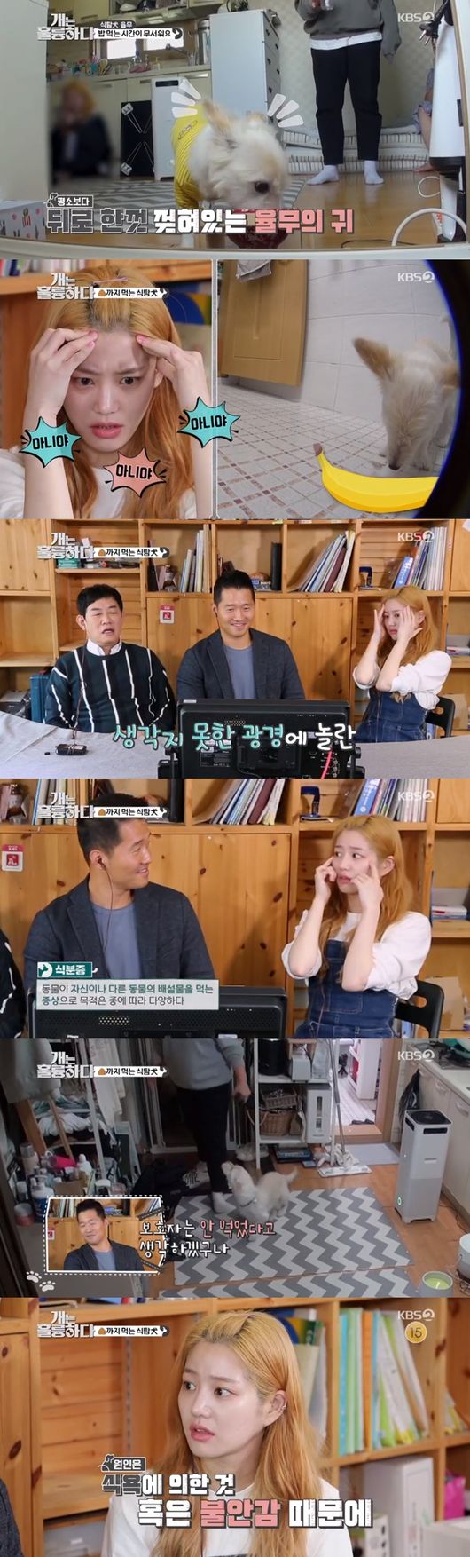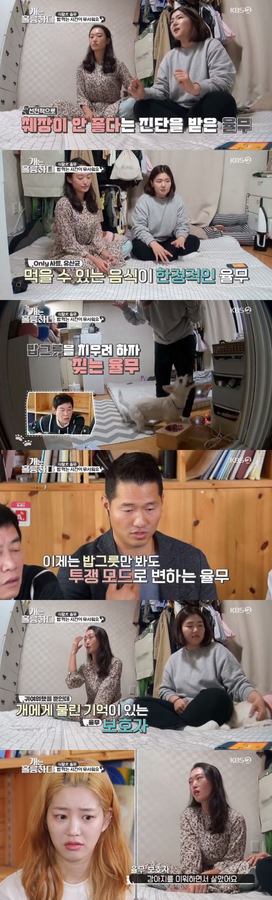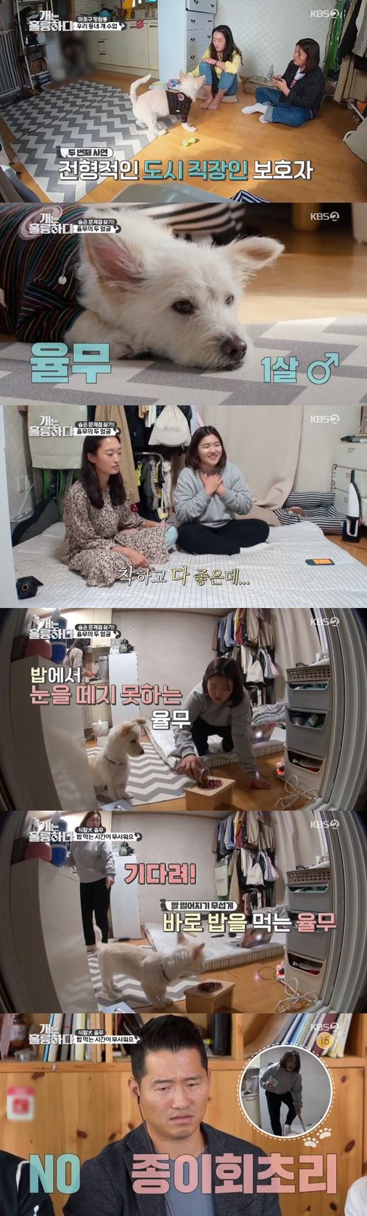 9일에 방송된 KBS2TV '개는 훌륭하다'에서는 식분증과 식탐으로 난항을 겪고 있는 율무의 보호자를 교육하는 모습이 그려졌다.