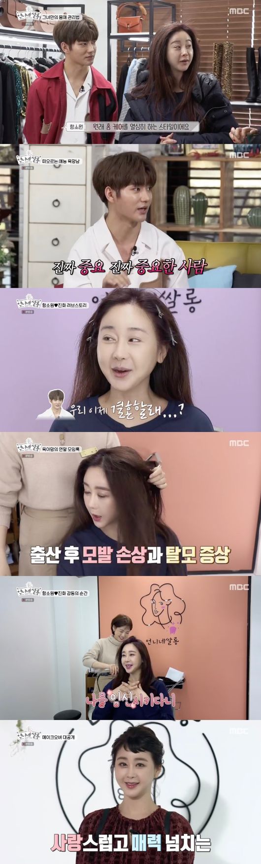 함소원은 민낯에 롱패딩 차림으로 '언니네 쌀롱'을 찾았다. 함소원은 "진짜 숍 갈 시간이 없다. 남편이 저를 보다 못해 의뢰를 해줬다"며 육아 고충을 토로했다.