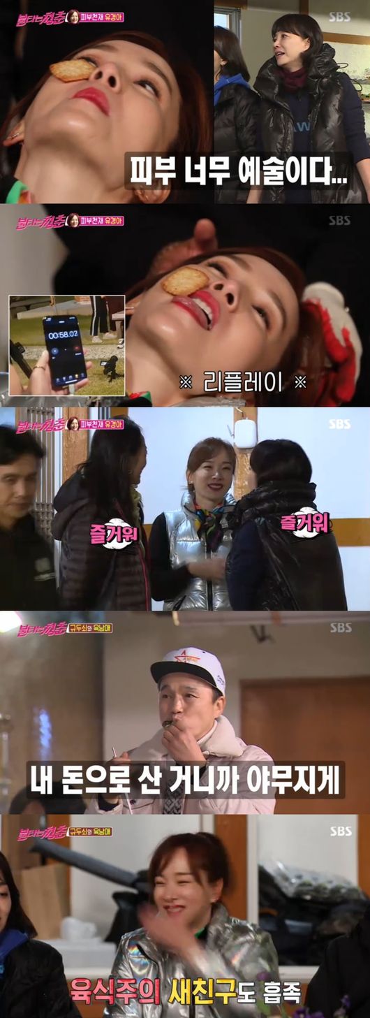 분위기를 바꿔 멤버들이 라면을 걸고 과자게임을 진행했다. 얼굴에 과자를 올려 입으로 찾아먹어야하는 것이었다. 유경아는 과자게임에 열중, 0.14초를 남기고 드라마틱하게 성공해 모두를 환호하게 했다. 모두 "정말 잘했다"면서 "피부 탄력이 좋긴 좋다"고 말해 웃음을 안겼다.