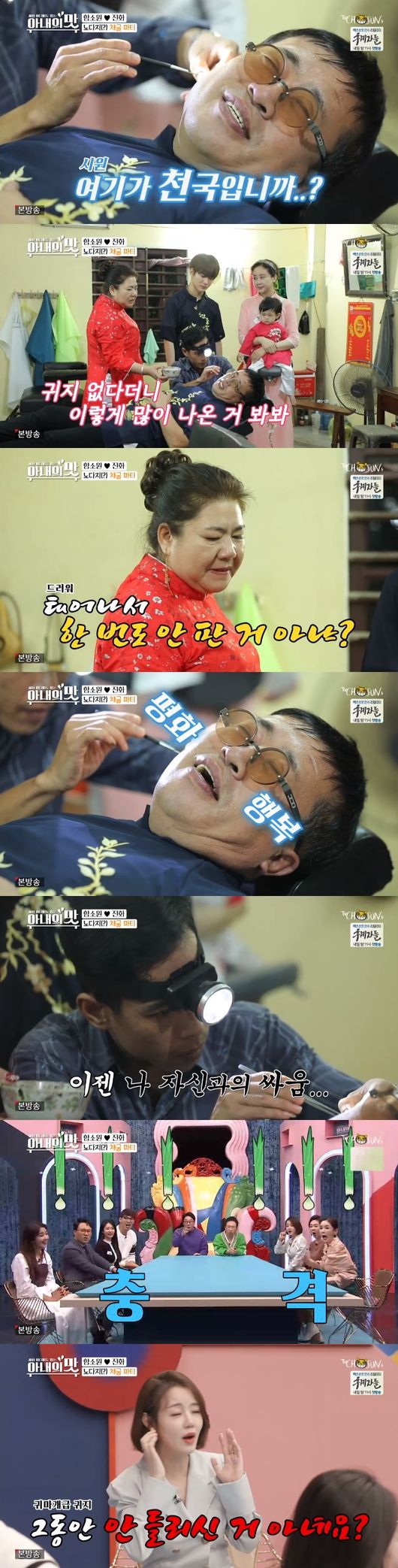 귀청소방에 들어선 가족. 명수는 "내가 저거 해봤는데 진동으로 파주는 거다" 라고 했다. "얼마 안나올 거 같은데 저런 게 있냐"는 영란에게 명수는 "집 한채 나온다"고 했다. 아버지의 귀 청소가 이어지는 가운데 대왕귀지들의 등장으로 소원과 엄마가 경악을 감추지 못했다. 엄마는 "태어나서 한번도 안판 거 아니냐"고 했고 아빠는 행복한 표정으로 눈을 감았다. 귀지가 나올 때 마다 소리지르는 가족들에게 놀란 혜정이 울음을 터트렸고, 소원은 "괜찮아 너무 큰게 나와서 놀랐지, 그럴 수도 있는거야"라면서 혜정을 달랬다. 명수도 "저게 나온거면 평소에 귀가 안들렸던 거 아니냐"고 했다.