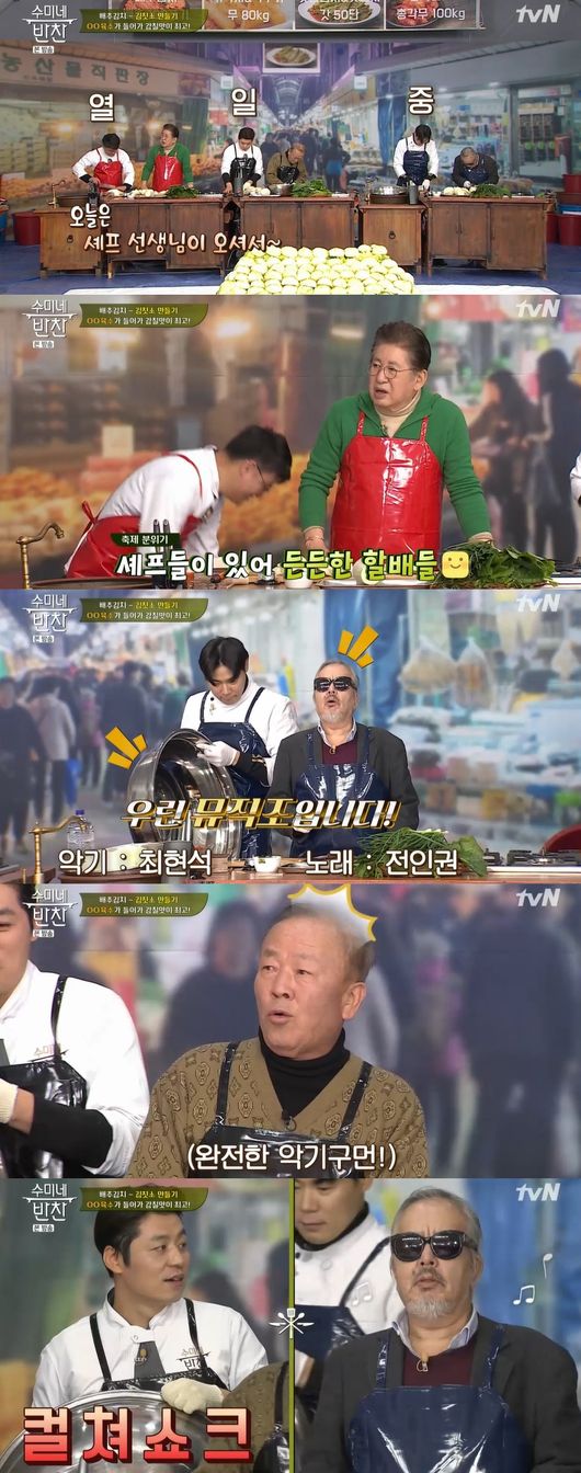 이때, 전인권이 사라졌다. 전인권은 잠시 잠시를 비우더니 "옹심이 맛좀 보고싶다"면서 감자 옹심이가 있는 곳에서 시식, 전인권은 "옹심이를 정말 좋아한다"면서 "못 참겠다"고 말했고, 이를 본 김수미는 "이제 개인방송 한다"며 폭소했다. 전인권은 아랑 곳 하지 않고 짝꿍 최현석에게 가져다 주며 "내가 의리가 좋다"고 나눠먹어 웃음을 안겼다. 뮤직쇼 케미였다.