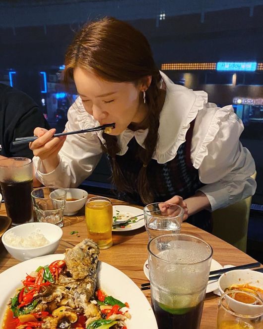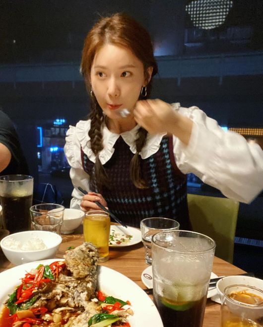 사진 속에는 배는 별로 고프지 않지만 폭풍 먹방을 펼치는 윤아의 모습이 담겼다. 양갈래 머리로 귀여움이 한껏 높아진 윤아는 젓가락을 멈추지 않으며 음식을 공략하고 있다.