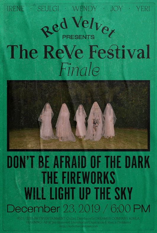 레드벨벳의 리패키지 앨범 ‘‘The ReVe Festival’ Finale’는 오는 23일 발매되며, 지난 6월과 8월 발표한 미니앨범 ‘Day 1’, ‘Day 2’ 수록곡 12곡에 신곡 4곡을 추가, 총 16개 트랙으로 구성되어 있어 레드벨벳의 풍성한 음악 색깔을 만끽하기에 충분하다.
