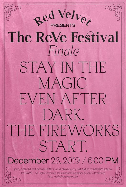 더불어 레드벨벳은 지난 달 세 번째 단독 콘서트 ‘La Rouge’(라 루즈)를 개최해 완성도 높은 음악과 콘셉추얼한 무대가 어우러진 한 편의 뮤지컬 같은 공연으로 극찬을 받는 등 다양한 매력으로 가요계를 수놓은 만큼, 2019년을 화려하게 마무리할 레드벨벳의 새 앨범에 이목이 집중될 전망이다.