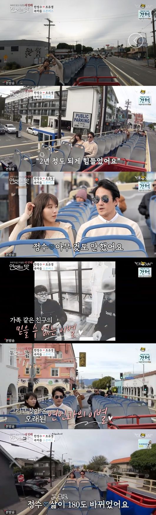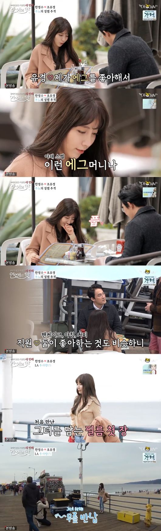 이후 두 사람은 '산타모니카'로 향했고 한정수는 처음 이곳을 방문했다는 조유경의 사진을 찍어주었고 이내 함께 첫 셀카도 찍었다. 두 사람은 벤치에 앉아 돌고래를 보며 "처음 보는 거다"라며 흥분했다. 이어 오픈 버스를 타며 시내를 구경했다.