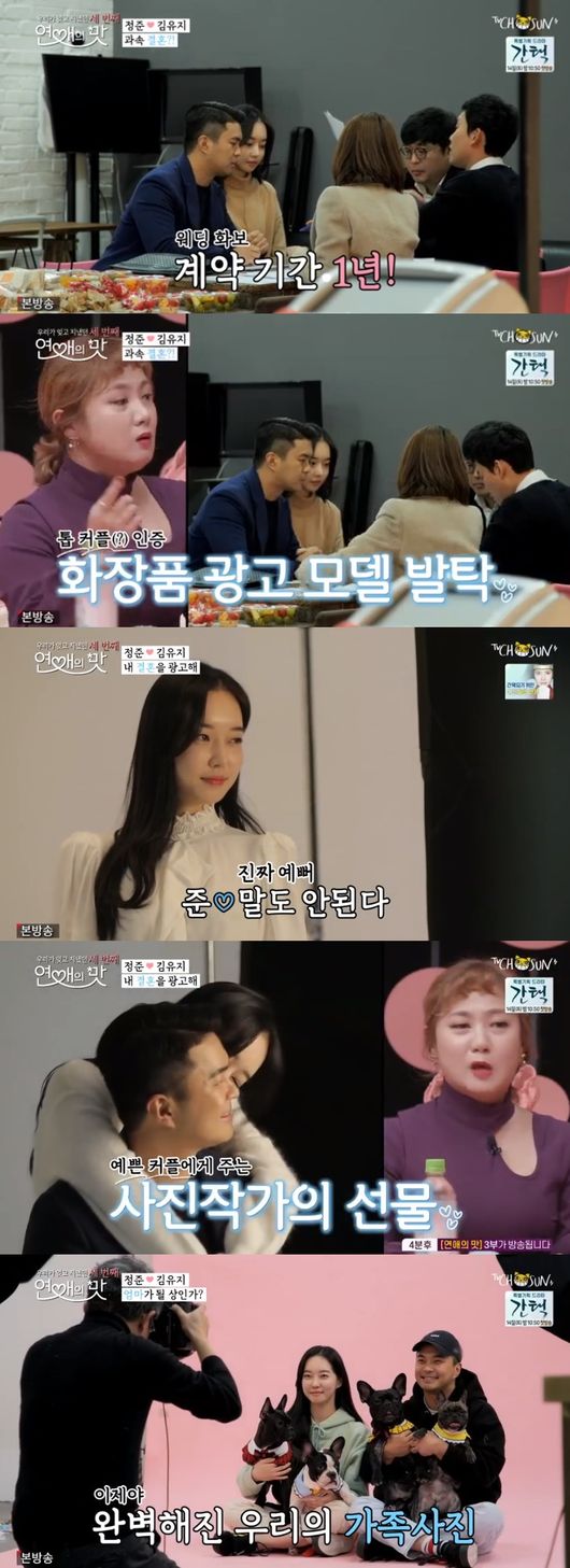 한편 이날 정준과 김유지가 화장품 광고 모델로 발탁 돼 계약하는 모습이 그려졌다. 콘티를 본 정준은 계약서를 꼼꼼하게 읽었고 관계자는 1년동안 잘 부탁한다고 전했다. 이에 이에 김재중은 "그럼 1년 동안 못헤어지는 거 아니냐"고 물었고 정준은 "그래서 1년 계약을 했다"고 말해 감탄을 불러일으켰다.